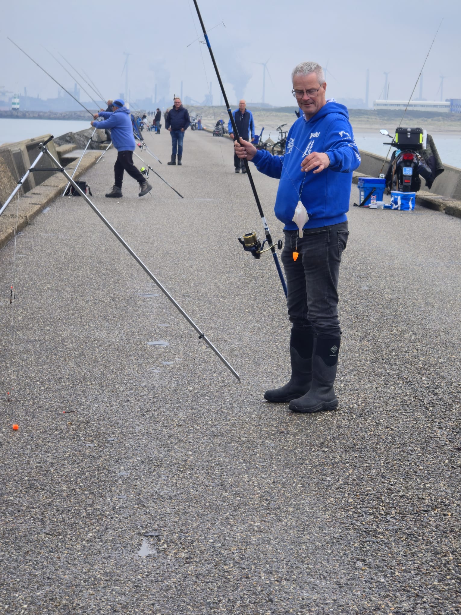 Maar eigenlijk was de vraag meer zou er nu ook echt al vis aanwezig zijn. Het getijde was niet optimaal vandaag een lang en langzaam afgaand tij zorgde voor weinig beweging in het water.
