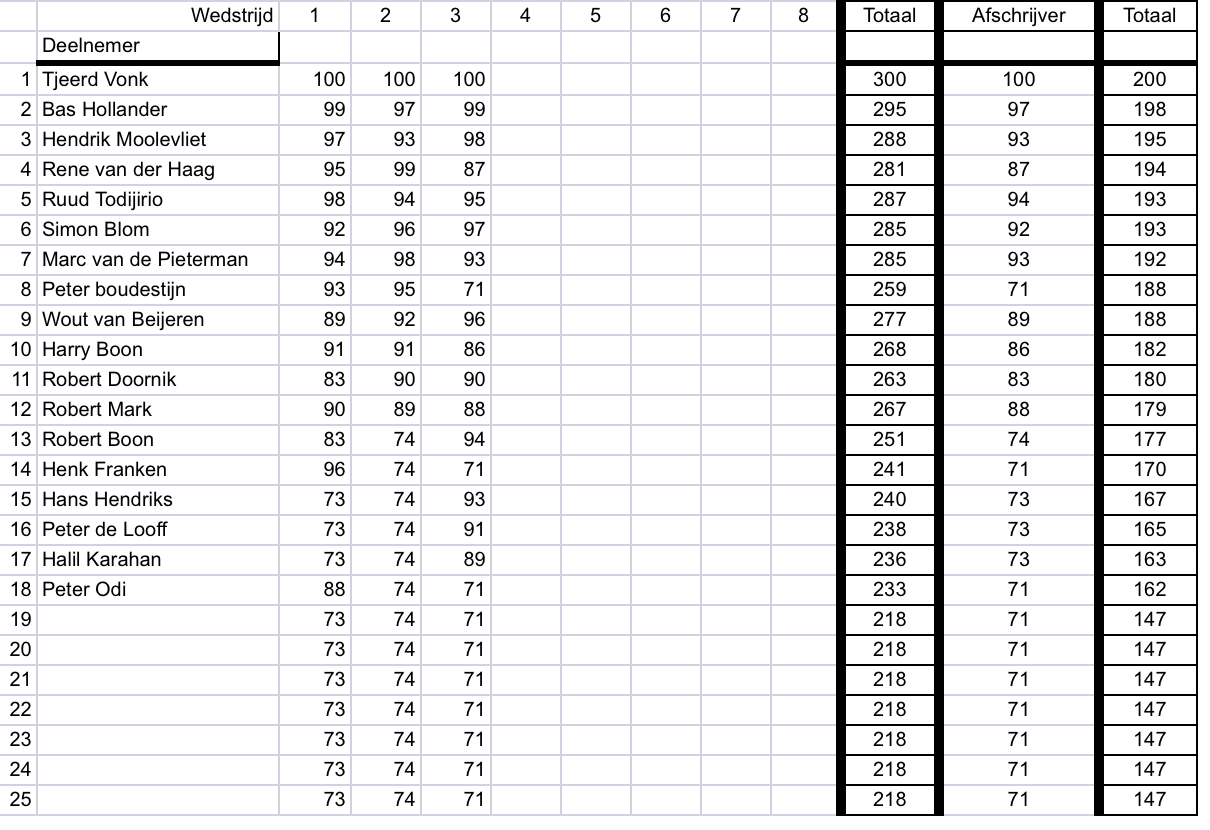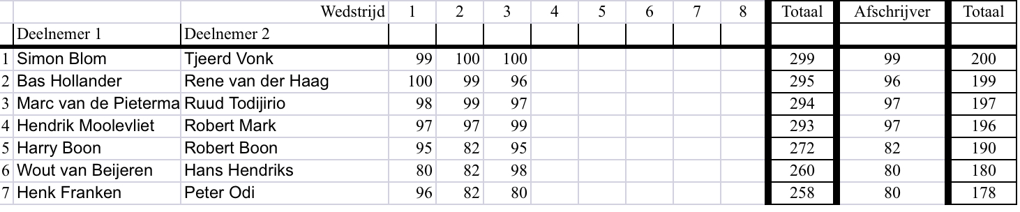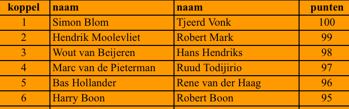 In de koppels wonnen Simon met Tjeerd en als tweede eindigden Bas en René (heb ik meer gezien), derden werden Marc met Ruud.