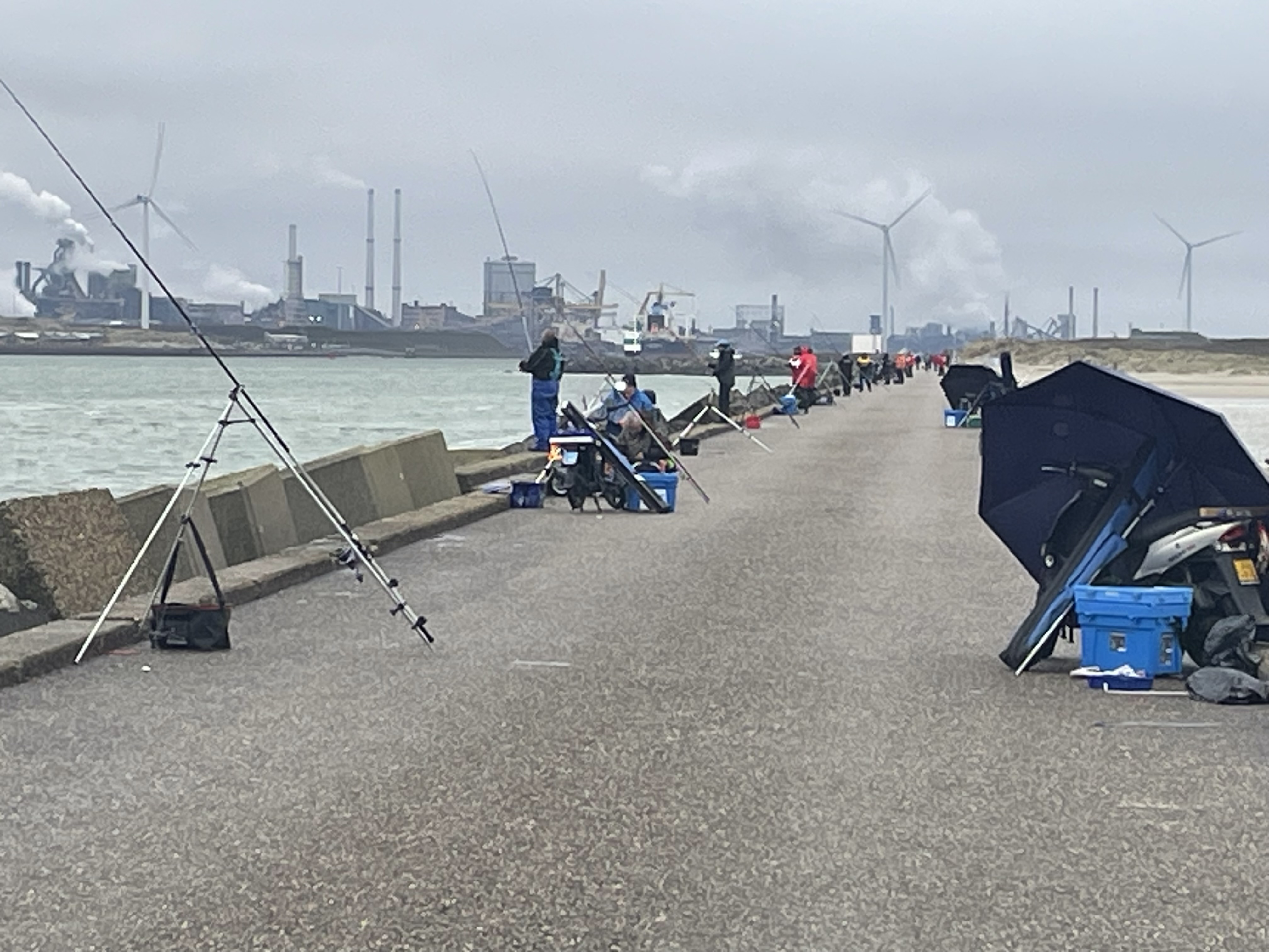 Ondanks de mindere weersvoorspelling viel het op de pier mee met de wind en regen.